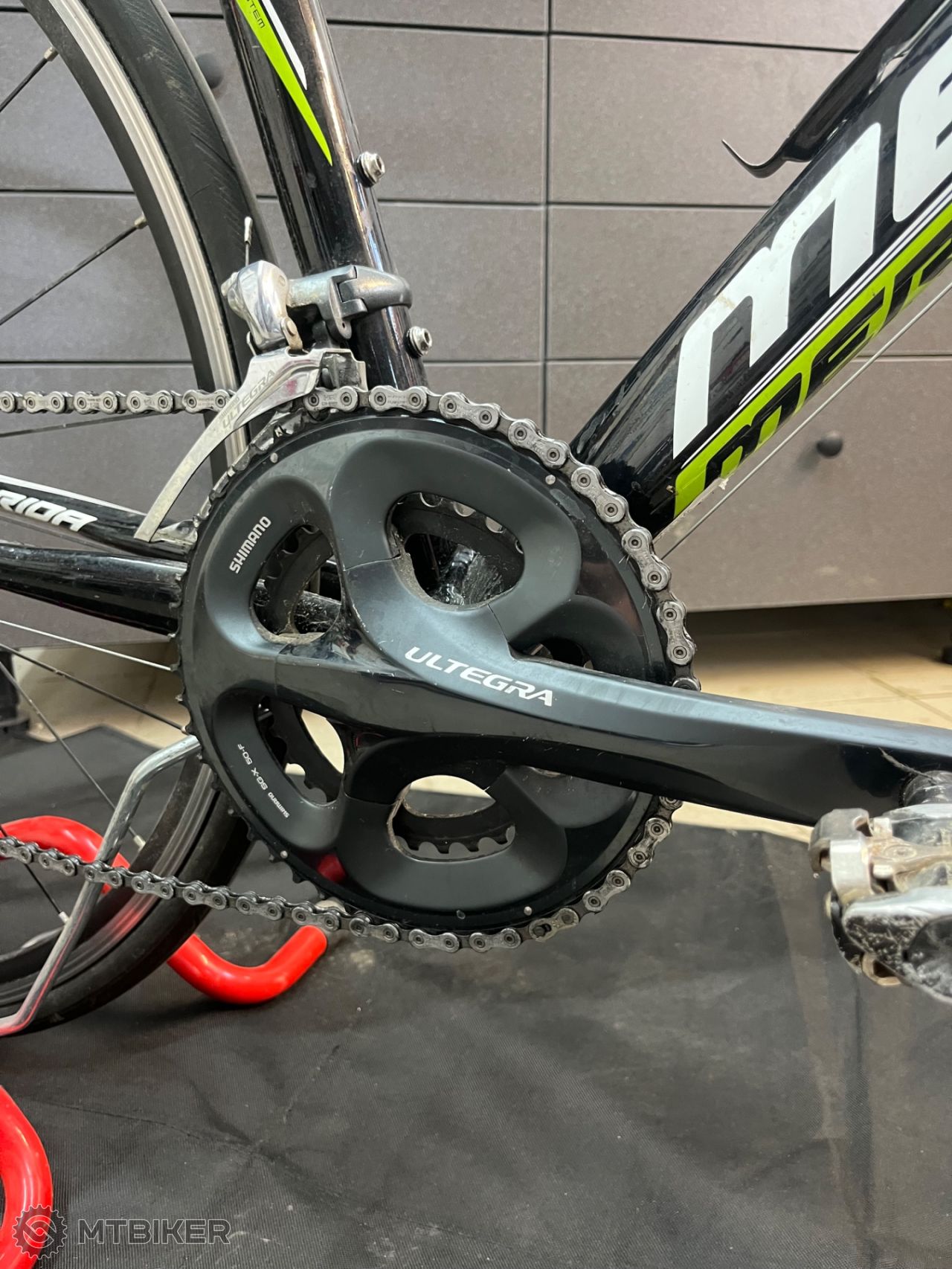 Je na ňom mechanická Shimano Ultegra 10rýchlostná, brzdy tiež Shimano Ultegra