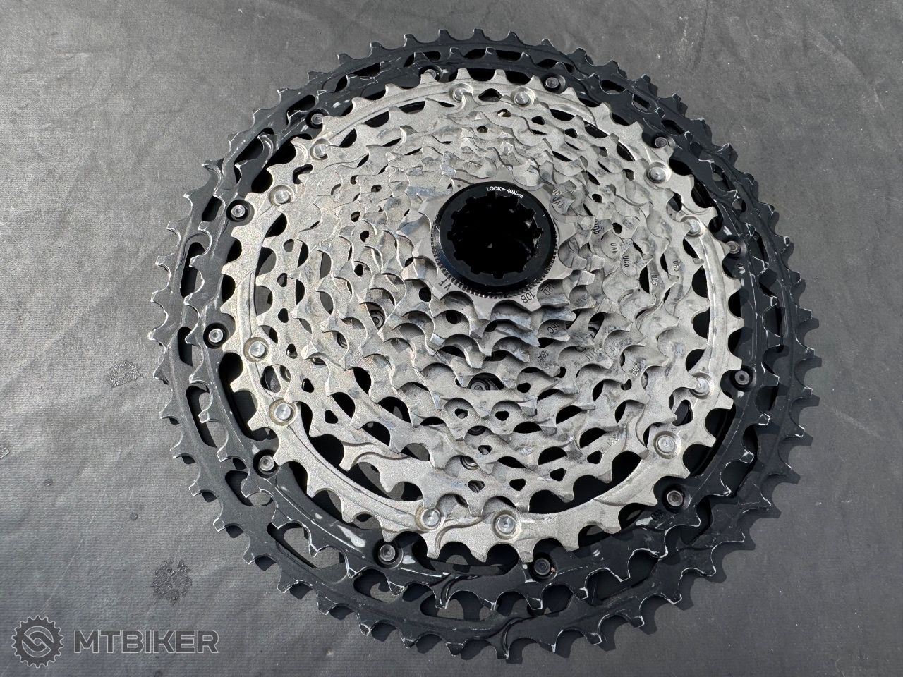 Kazeta M8100, 10-51, použito nezávodně pouze v suchu, od března nevyužito. Spodní 3 pastorky na podzim vyměněny, vše funguje, nic nestřílí, pravidelně udržováno a čištěno. Stav viz foto
