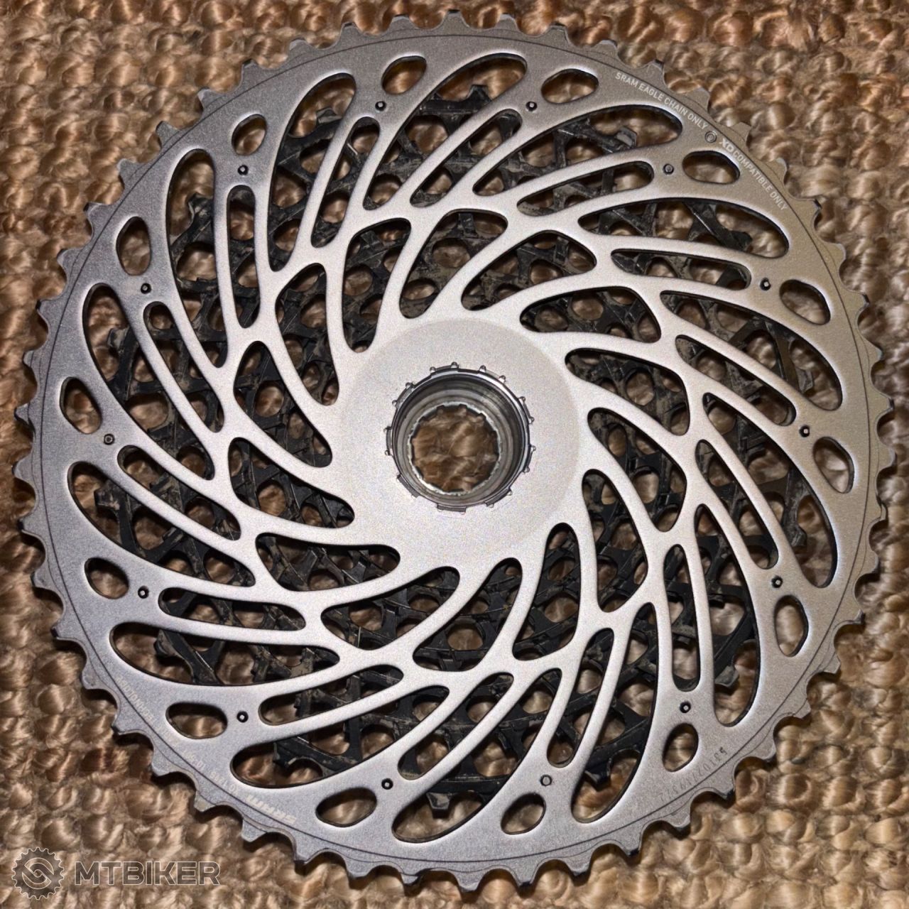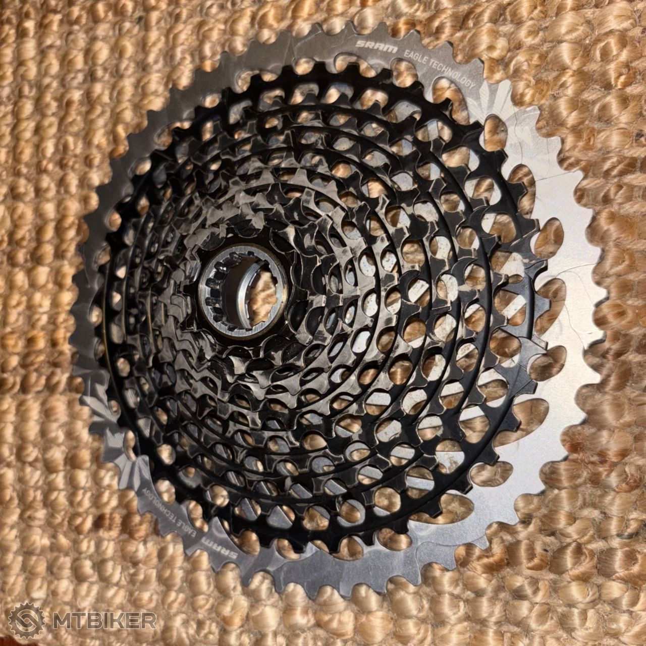 SRAM GX Eagle XG-1275 (10-52z) Prodám 12rychlostní kazetu SRAM GX Eagle (XG-1275) s rozsahem 10-52 zubů. Kazeta je ve velmi slušném stavu, zuby jsou v pořádku a černá povrchová úprava Lunar je stále zachovalá (viz foto). Kazeta byla pravidelně čištěná a jetá s řetězy měněnými včas, takže má před sebou ještě velkou porci kilometrů. Rozsah: 10-52z Ořech: Určeno výhradně pro SRAM XD. Stav: Jetá, ale plně funkční, bez deformací zubů. Cena: 1 600 Kč + doprava