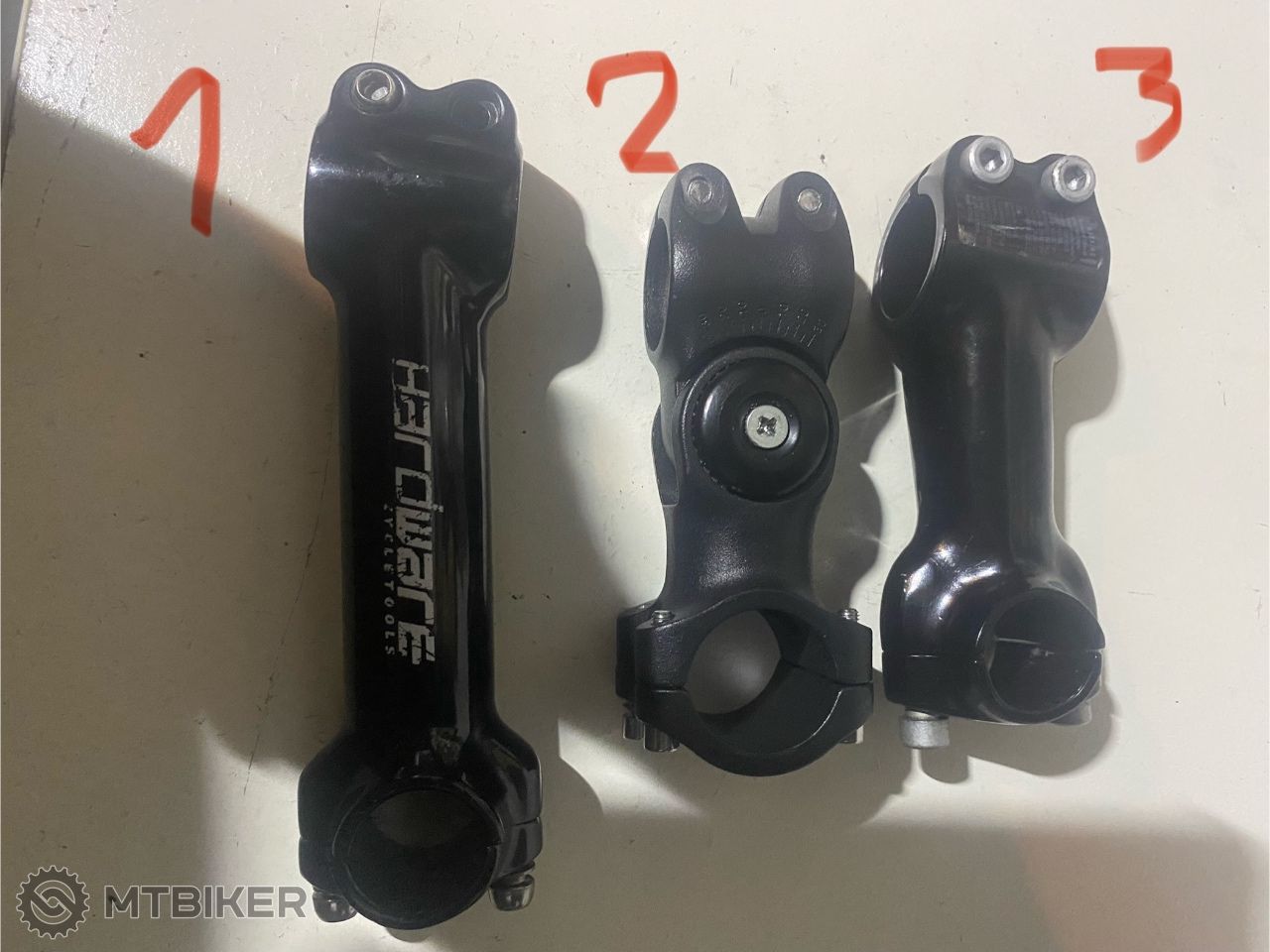 2. Čína, 9cm, riadítka 31.8, nastaviteľný uhol -/+30, úplne nový, nejazdený, pri prehnanom doťahovaní nastaviteľného kĺbu sa zlomila skrutka, teraz je tam skrutka náhradná, len aby to držalo pokope, určite ju však treba vymeniť za poriadnu.Cena 5 eur.
